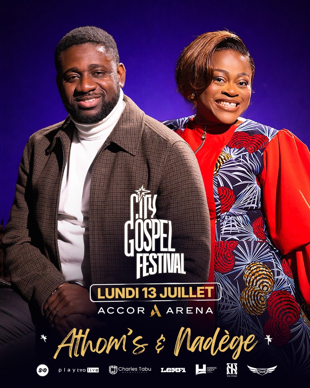 Le couple phare du Gospel à Bercy ! Retrouvez Athom’s et Nadège sur la scène mythique de l’Accor Arena pour le City Gospel Festival. Un moment de communion monumentale le Lundi 13 Juillet. Réservez vos places dès maintenant.